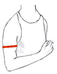 To measure the chest circumference, stand straight and wrap the measuring tape around the highest part of your chest, right where you armpits are and make sure the tape is arranged in a straight line.
