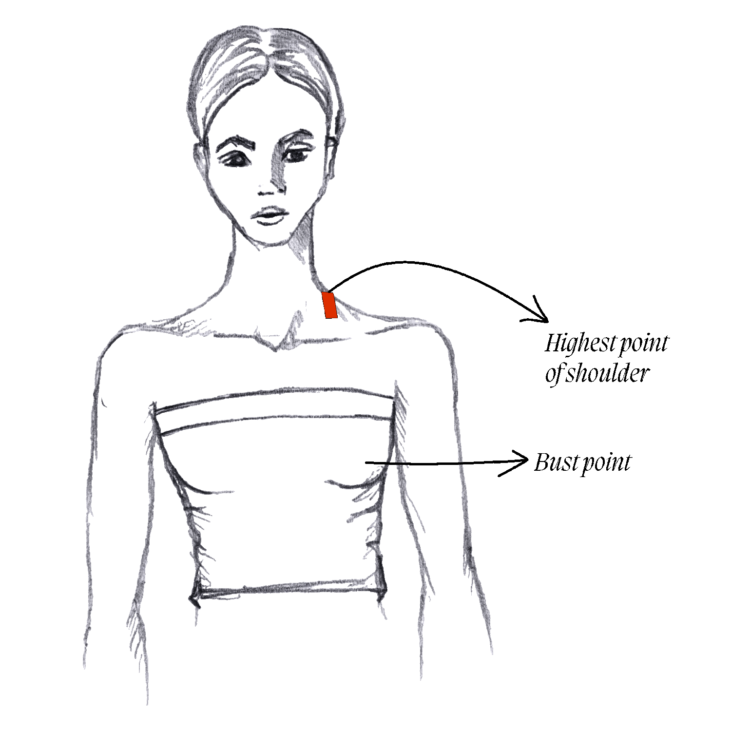 This body detail will help us get a perfect top or dress fit for you where the style is fitted, to ensure the perfect positioning of darts or items that have bra pad inserts.