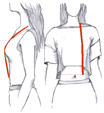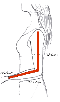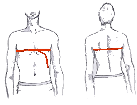 There are different kinds of shoulder types as shown in the diagram. You need to measure the shoulder width from your back from one shoulder bone to the other as shown in diagram for standard and straight type shoulders. In case of a sloping shoulder, you need to measure the entire shoulder slope as shown. We might ask you for a picture of your shoulder slope as well. If you want a dropping shoulder outfit, measure the extra inches you require on one side of the shoulder separately apart from the shoulder width (as shown in the image).