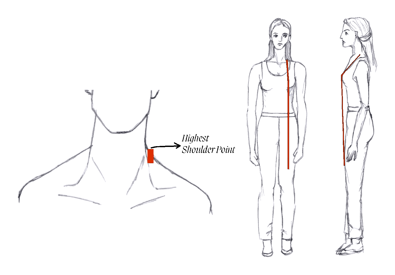 Stand straight (do not droop your shoulders), measure the length from the highest point of your shoulder - the nape of your neck from the front, down till the roundest part of your bust (from where you measured the bust circumference).