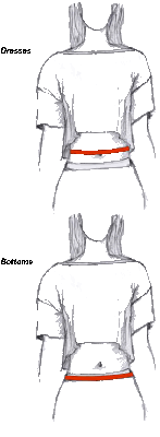 For women’s dresses, you’ll need to measure the hip length as well, ie. from the highest shoulder point to the hip level from where you measured the circumference.